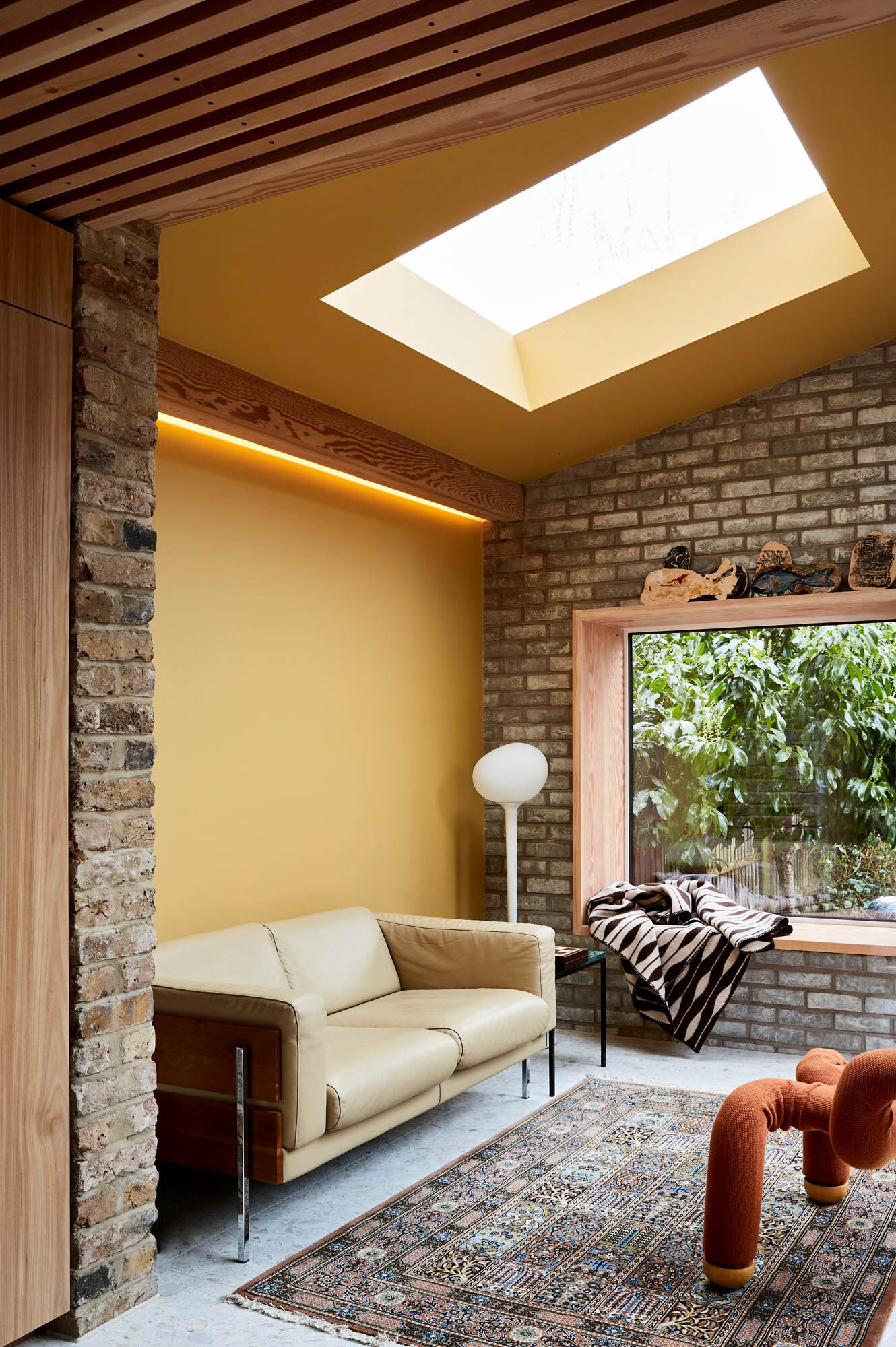 Visual connection with nature: In our designs, we prioritise views to outdoor elements of nature, living systems, and natural processes through windows. Even small, biodiverse green views can be restorative and lead to reduced stress, improved mental engagement, and overall happiness. With careful placement of windows we are able to frame views. Placing windows at the right height – using window seats and full height windows mean that the views can actually be seen from the kitchen table, the sofa and so on.