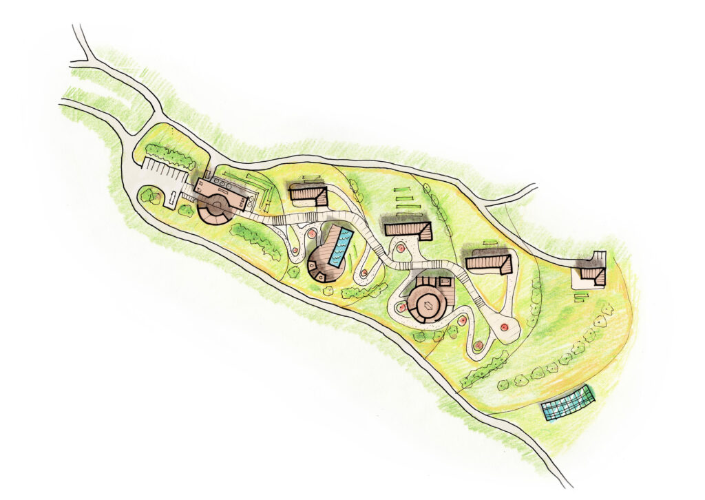 We joined our client at concept stage to do a site appraisal. Working closely with their operations and retreat team, we development a spatial brief for the retreat that was responsive to their programme and aspirations – incorporating the shared wellbeing facilities and the private cabins for accommodation sensitively in the landscape. We took this forward to design development and planning approval is now pending!